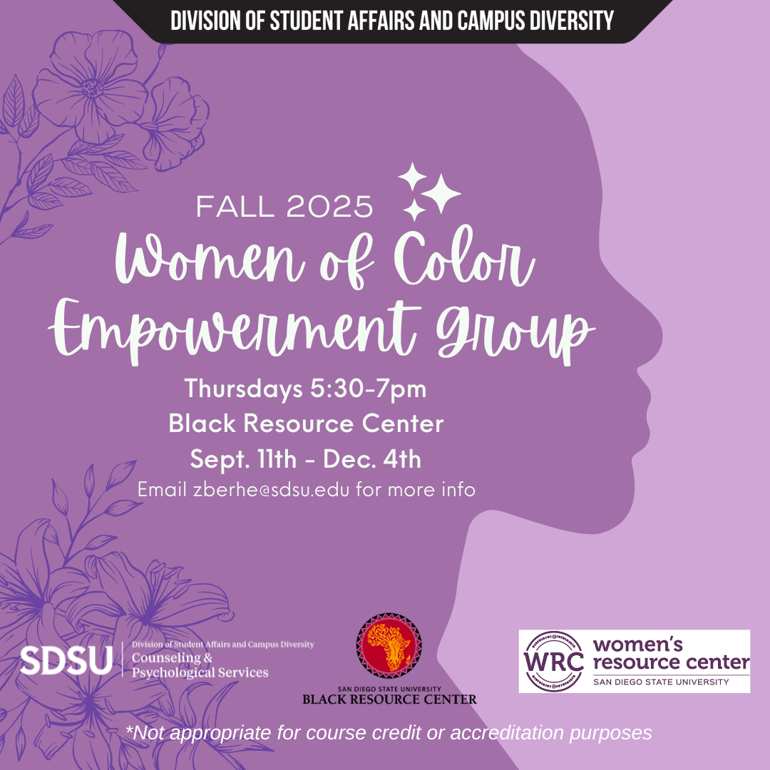 To join: Drop in to the Women's Resource Center (5121 Campanile Dr.) or call C&PS at 619-594-5220 (STARTING SEPT 16, 2025)